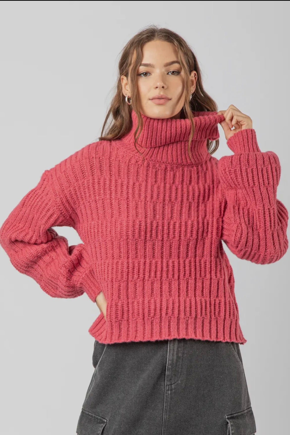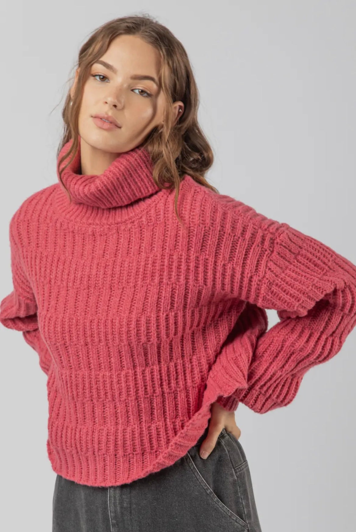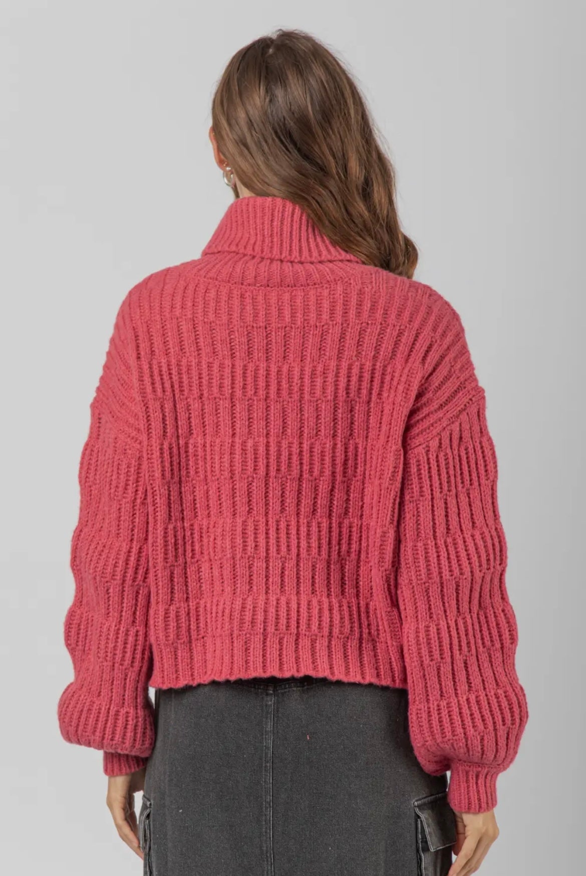 Textured Turtle Neck Knit Sweater. This sweater features a texture detail and a drop shoulder, this sweater does have an oversized fit to it.