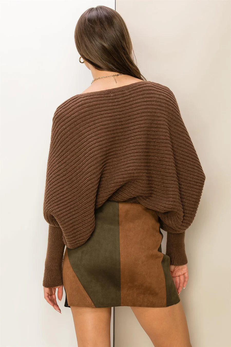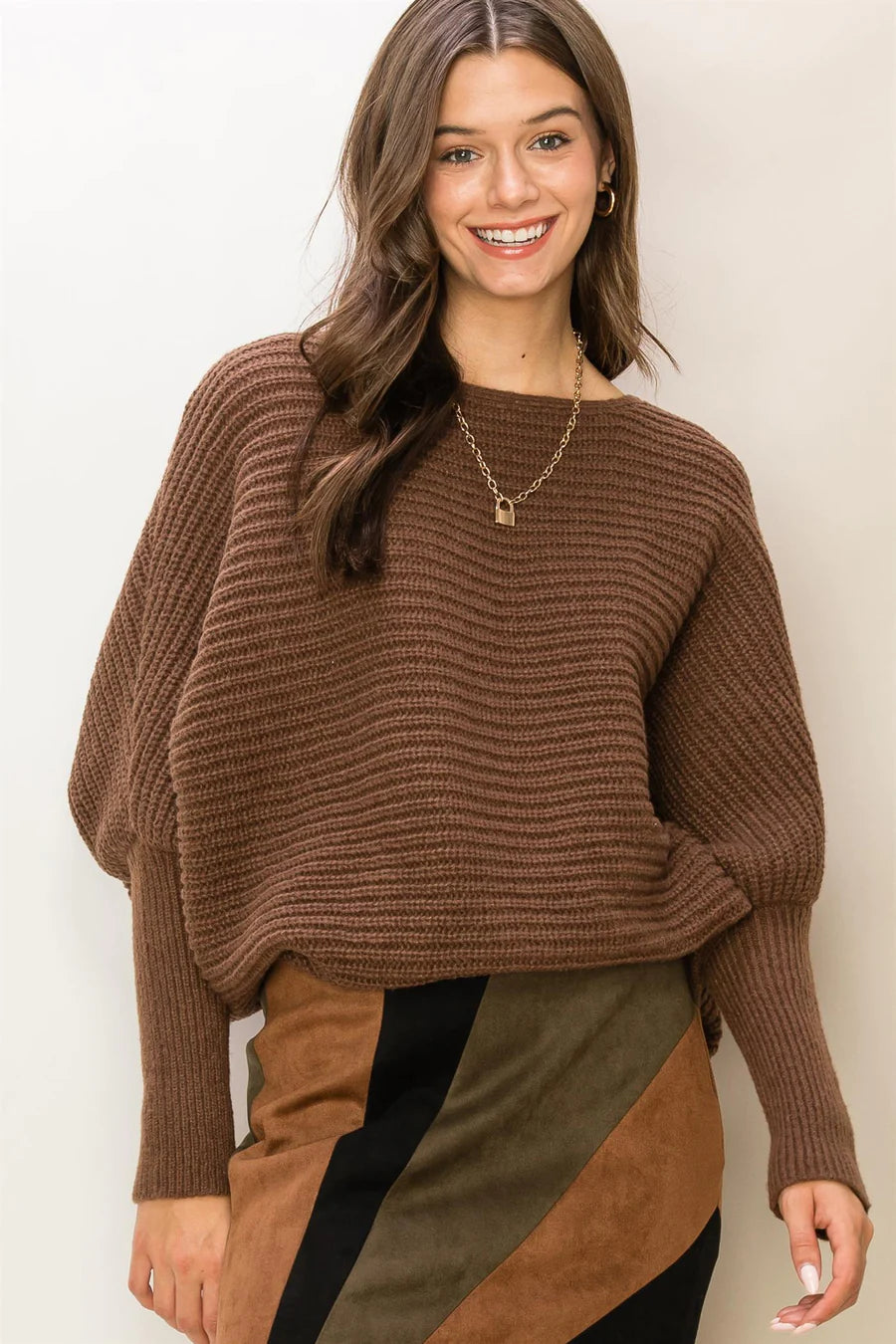 Sweater with Horizontal Ribbing offers a chic appeal to this sweater that features a boat neckline and a pair of long leg-of-mutton sleeves. The figure-flattering bodice boasts a relaxed fit.