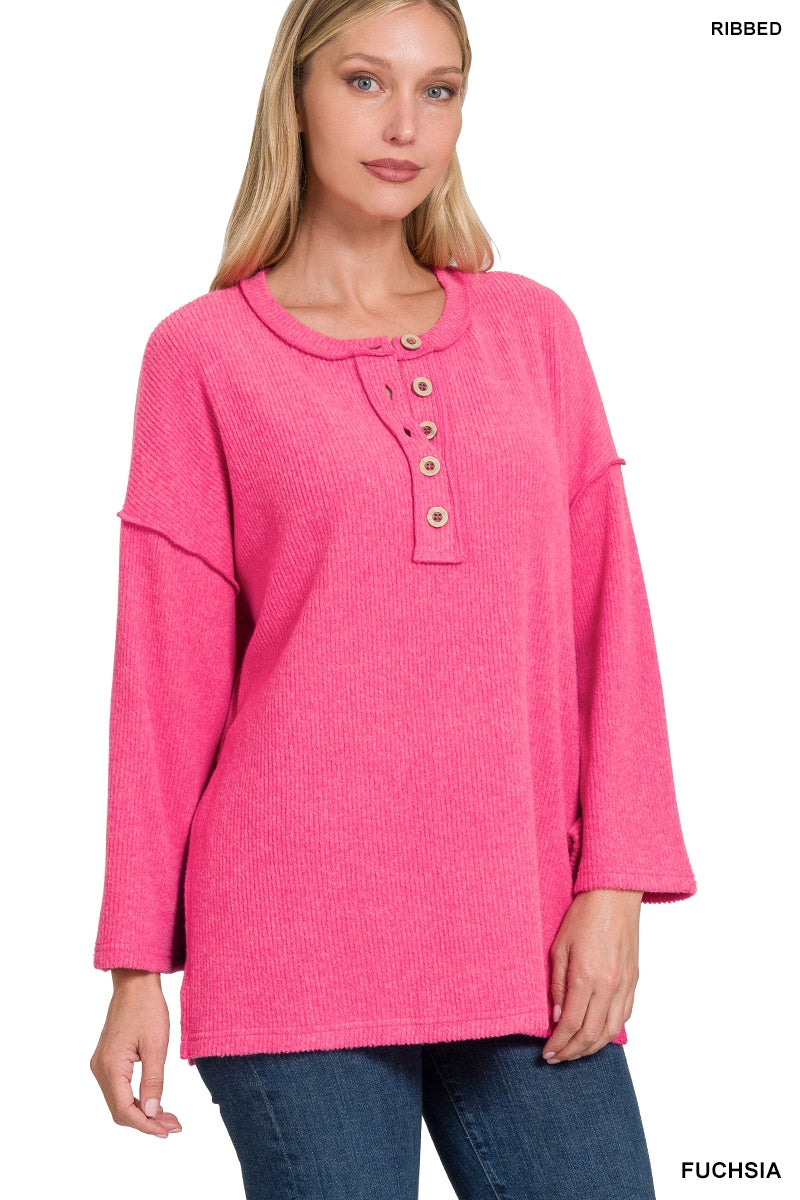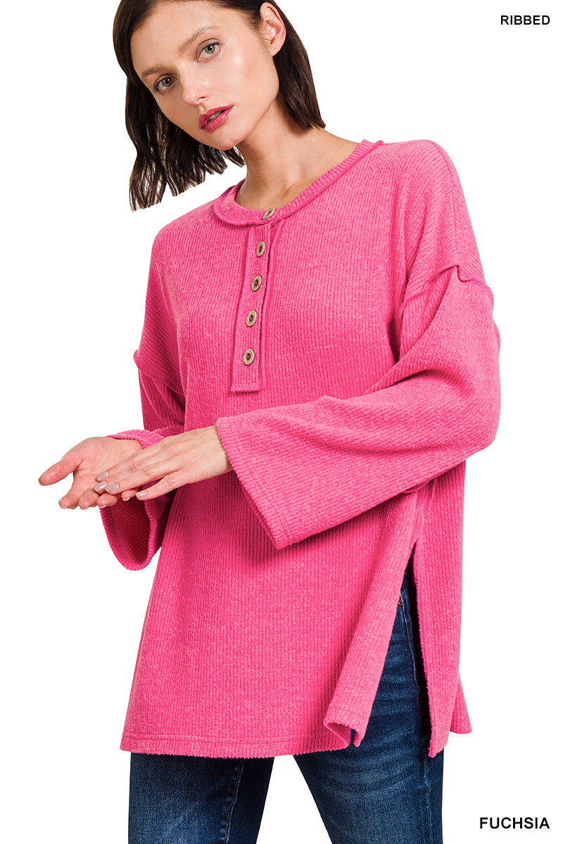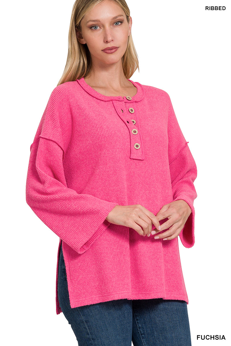 RIBBED BRUSHED MELANGE HACCI HENLEY SWEATER